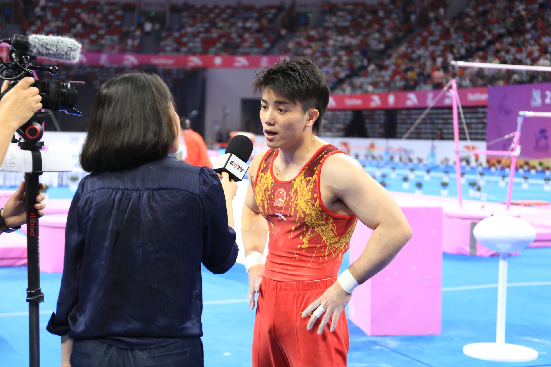 体操盛会,不仅高手云集,更是宾客满座。本次赛事进行到最后一天,恰逢周末,许多人都带着自己的家人朋友前来观赛,观众席上市民们热情高涨,用激烈的掌声与欢呼声为运动健儿加油助威,每当有运动员做出精彩动作亦或是比赛状态不佳时,他们都不吝掌声,纷纷为其叫好或呐喊鼓励。
