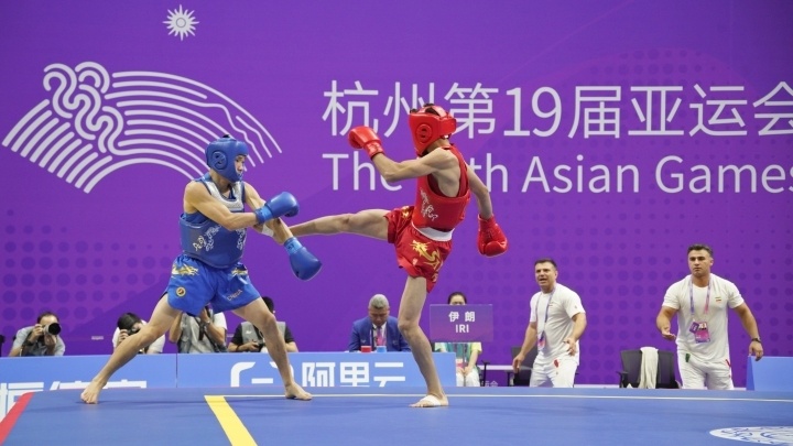 本届亚运会武术比赛,中国队一共派出11名选手参加11个小项的争夺。其中,武术套路比赛有8个小项,中国队除了在女子长拳和男子南拳南棍两个项目中未派选手参赛外,其余6个项目全部夺金。武术散打比赛中,中国队5名参赛选手李玥瑶、吴晓微、江海东、王雪涛、何烽相继登场,共收获5枚金牌,包揽了参赛项目的金牌。